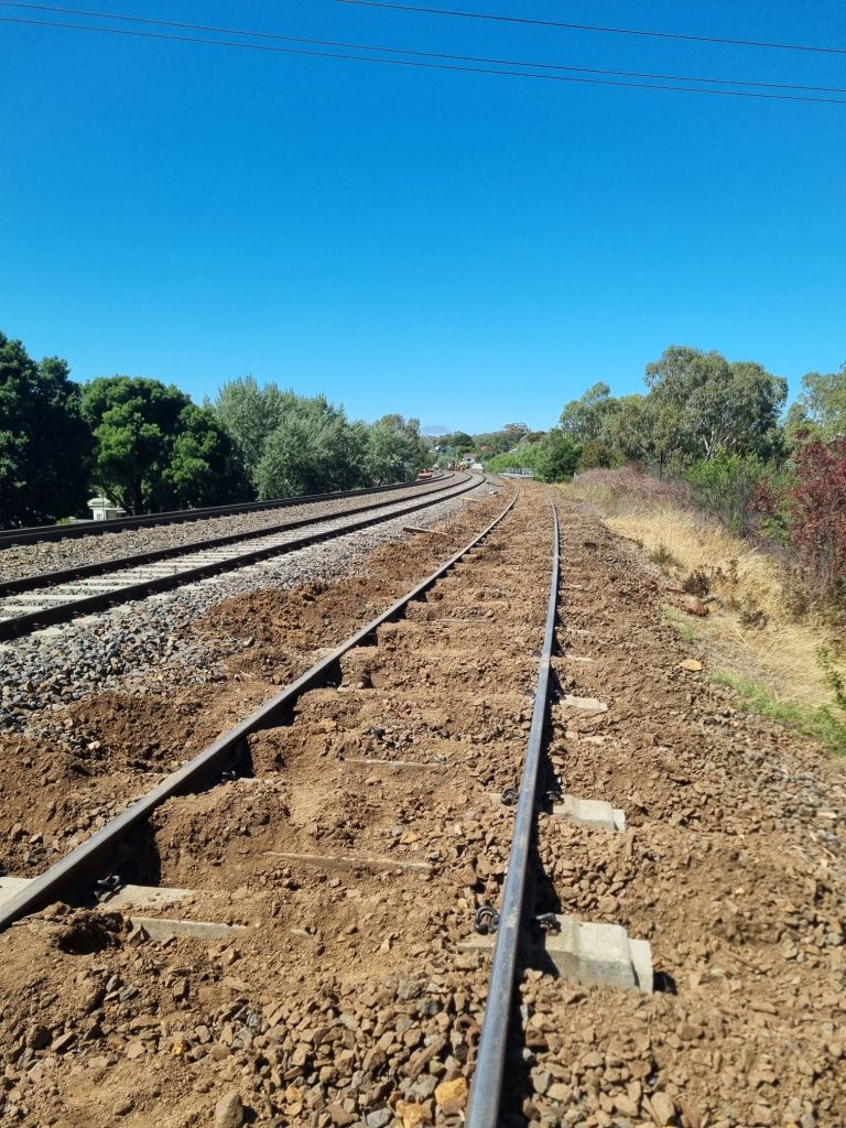 With the exception of the turnout to V/Line track, we’ve now got 100% concrete sleepers between the Yard and Forest Creek Bridge.