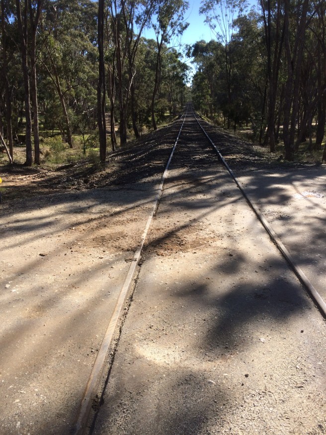 Sawmill Rd Level Crossing after replacement of the worn fish plates. The worn plates had resulted in a very rough joint in the crossing.