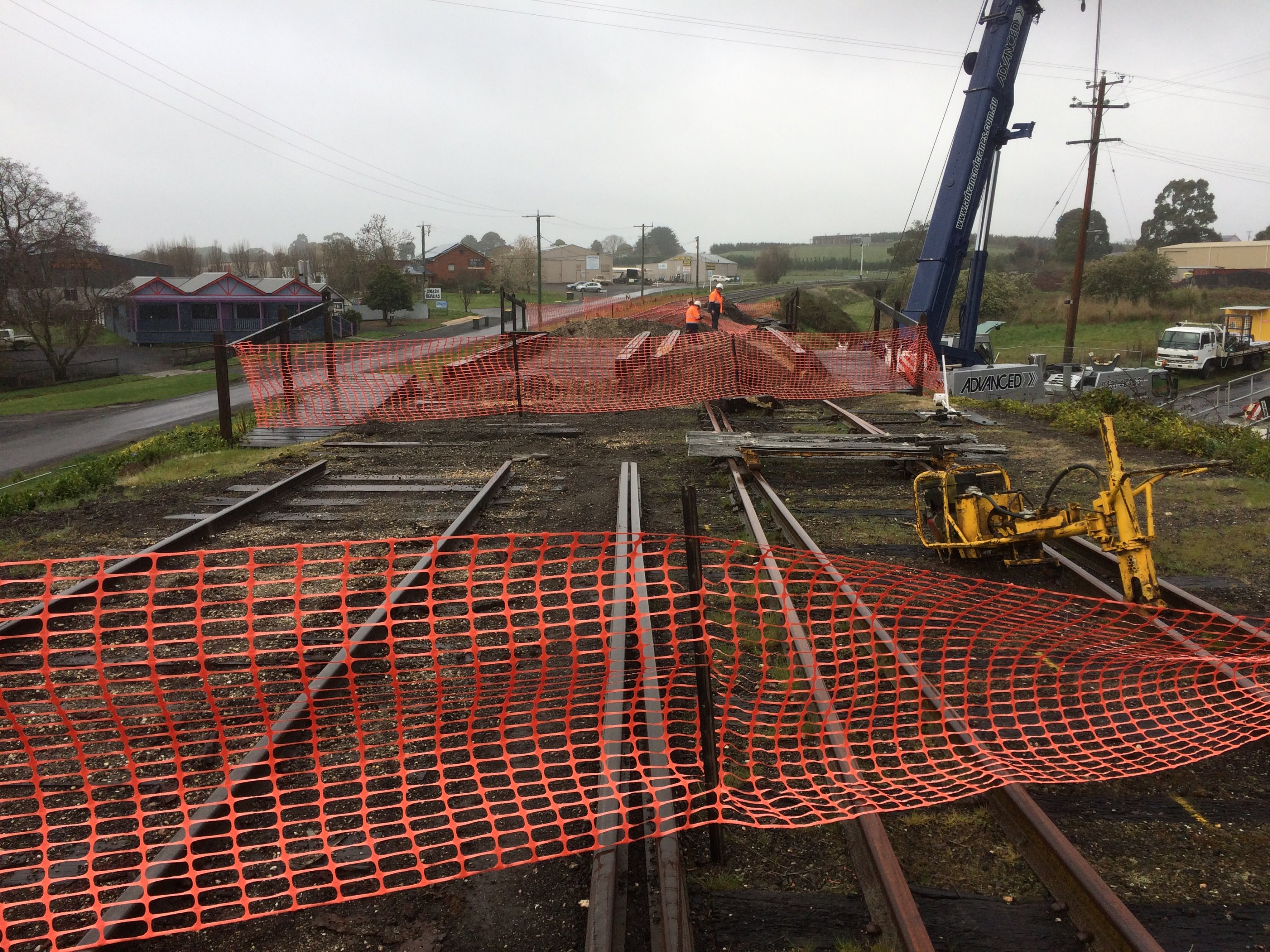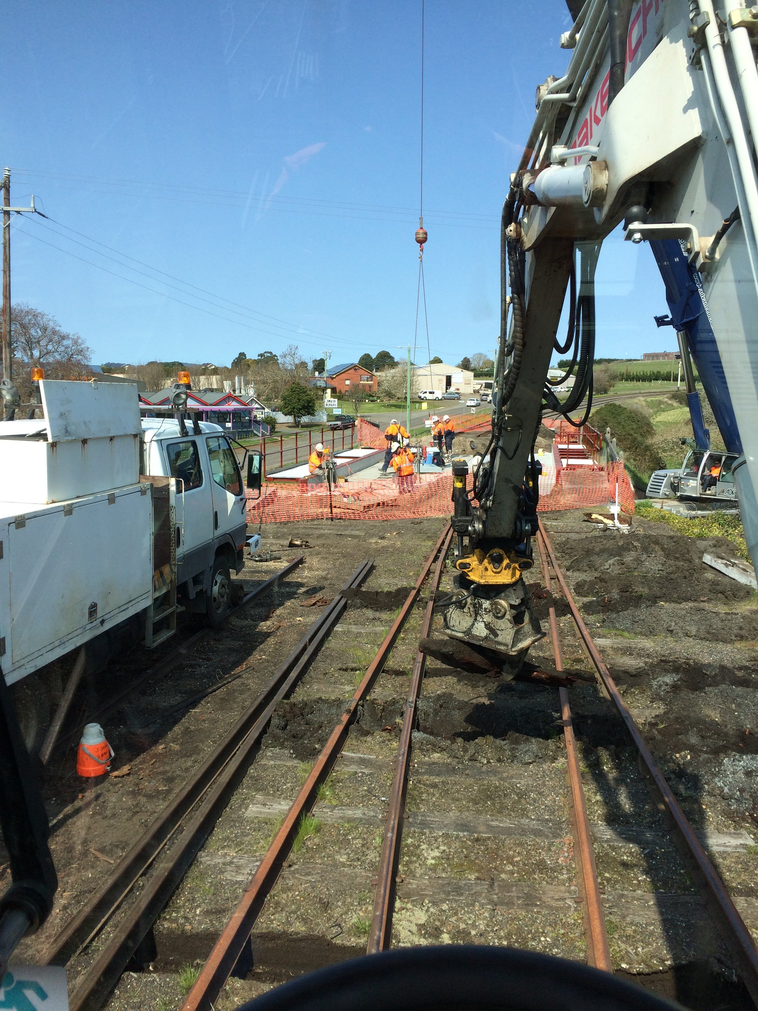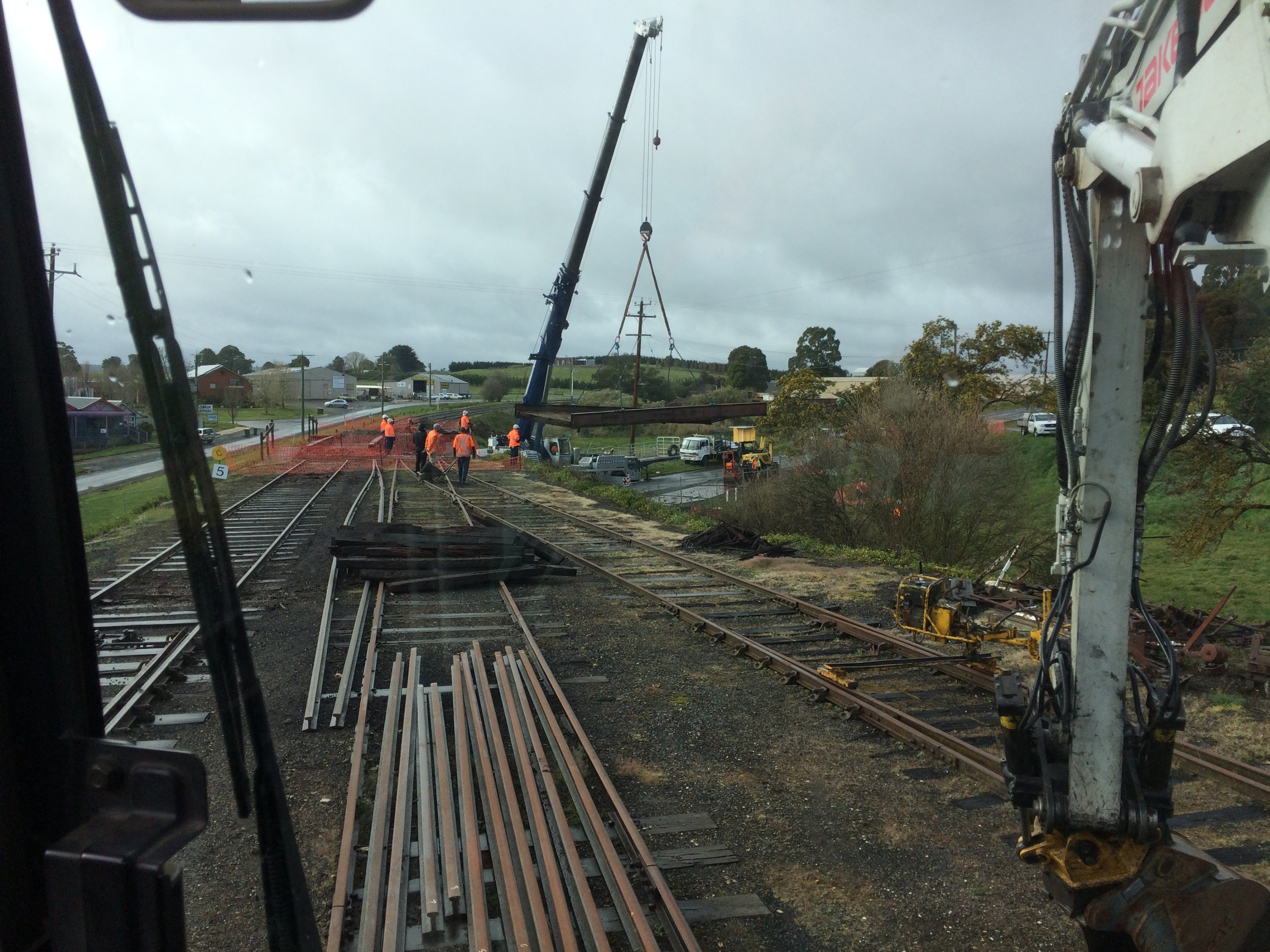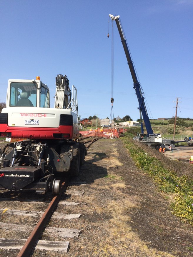 We transported our excavator over to help remove the old track and ballast, replace some point timbers and to build the new track.