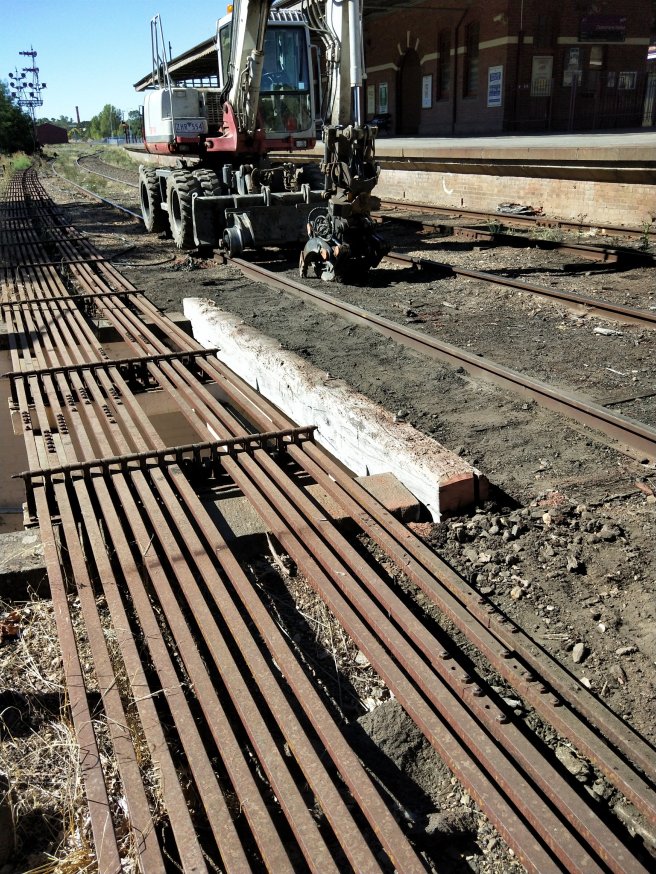 Friday’s small gang worked on replacing the timber edging above the pedestrian subway in Castlemaine. It is not a structural component, simply a ‘Kerb’ to keep the Ballast on the track and out of the subway.