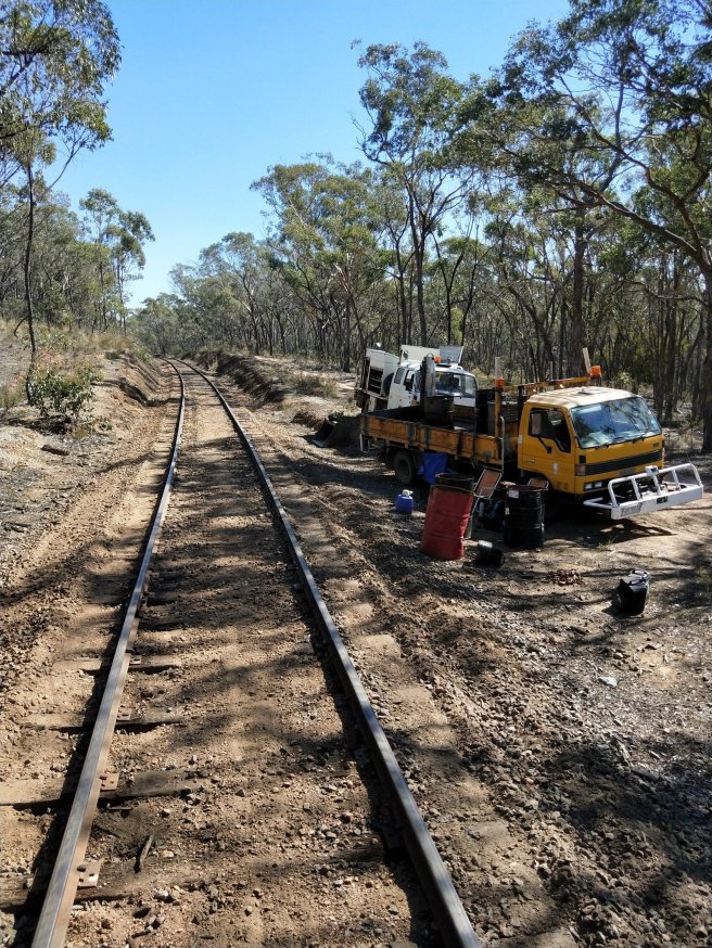 We’ve taken a different tack this time, placing the rails in the 5 foot rather than on the sleeper ends, this should making getting the old 60lb out of the way easier and should reduce the double handling of the sleeper plates.