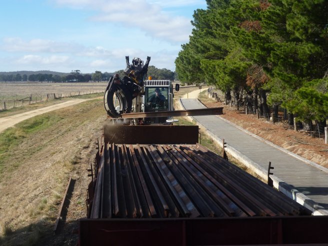 After lunch we’d finished the loading of the 60lb, so it was time to get some 80lb out for the next re-railing job. Seen here during afternoon tea at Muckleford.