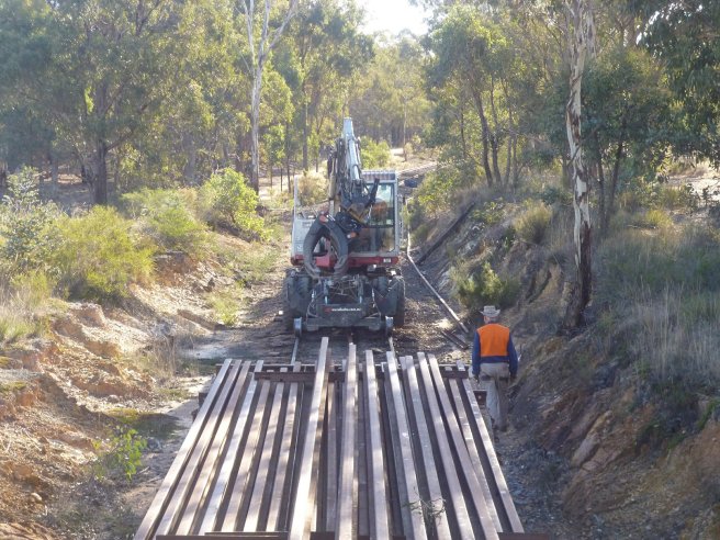 Lifting the rails off the wagon (just out of sight) and into the 5 foot.