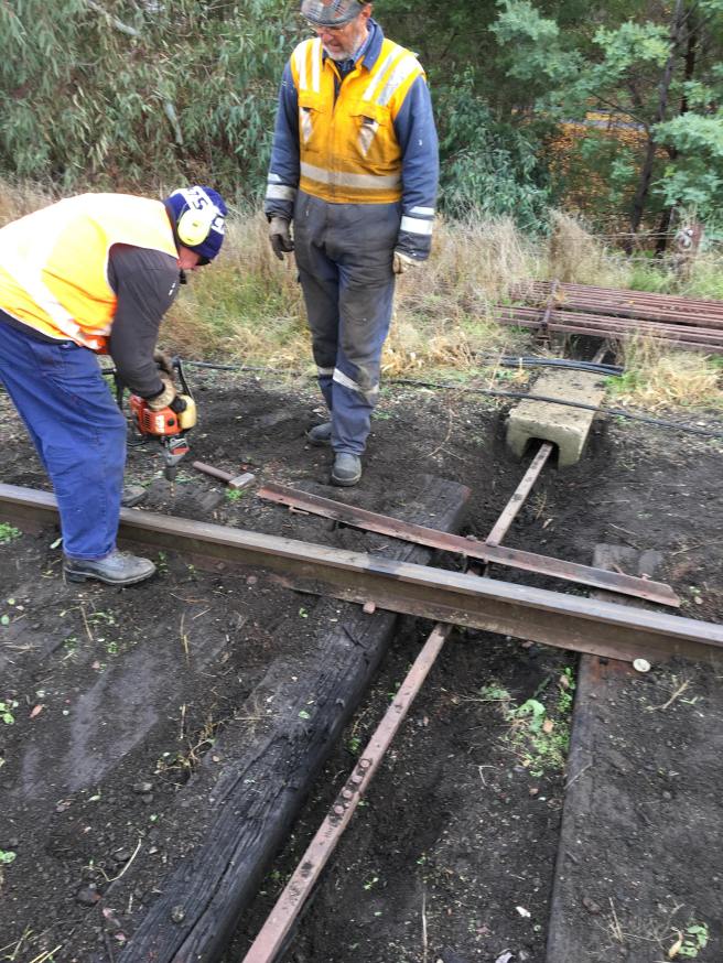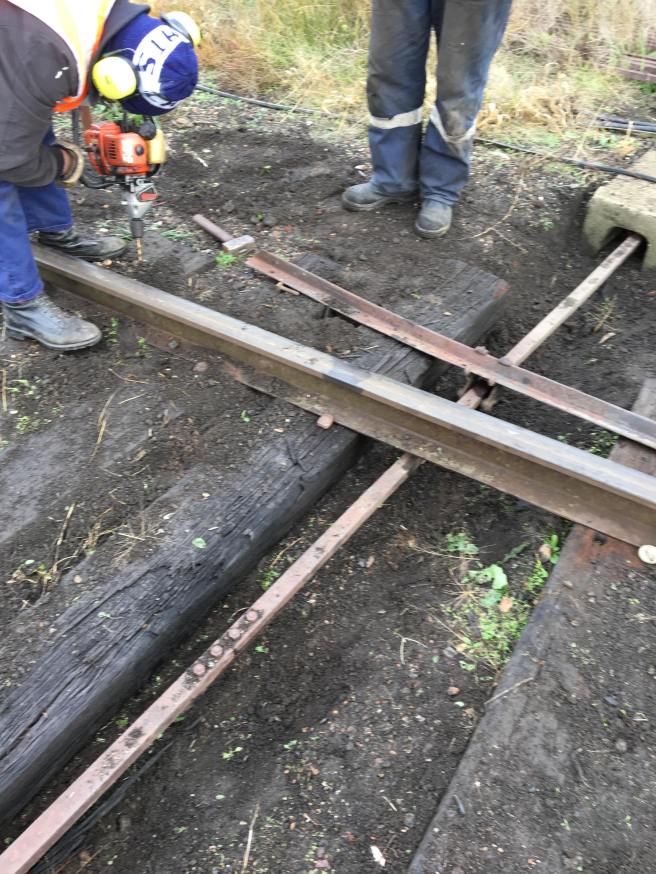 While in the yard we made use of the tools to re-gauge some joints which had become loose and begun to widen. Malcolm demonstrates his brute strength driving home a few dog spikes, occasionally it’s nice to keep the old skills alive.