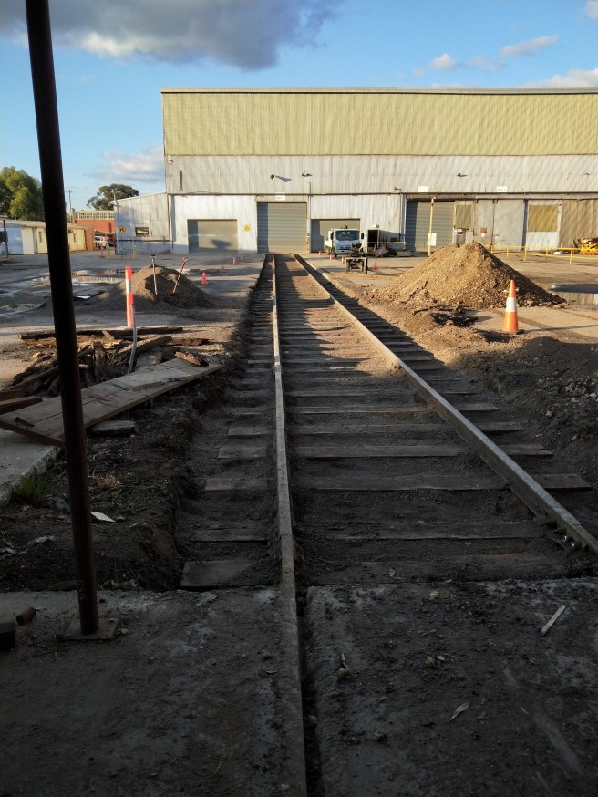 But first off we level some more crushed rock and gave a small tamp to the straight track near the sheds, ready for concreting.