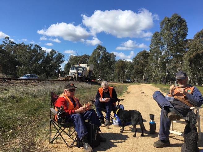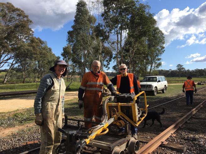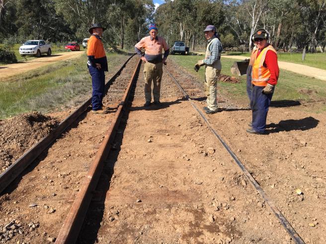 The team having a good look at their efforts! The foreground is the occupation crossing which has been dug up to allow the re-railing to occur.