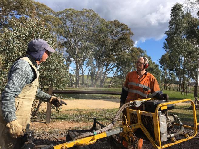 A couple of Norm, Bazz and Pete as they discuss and pose with the spiking hammer.