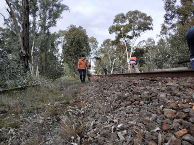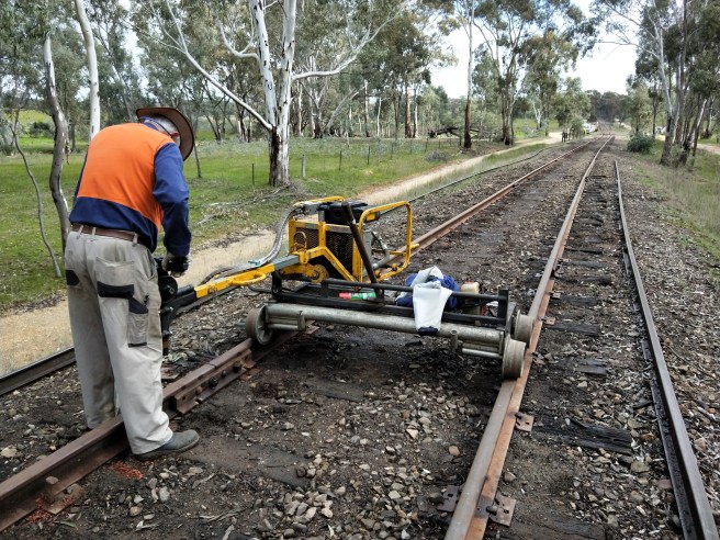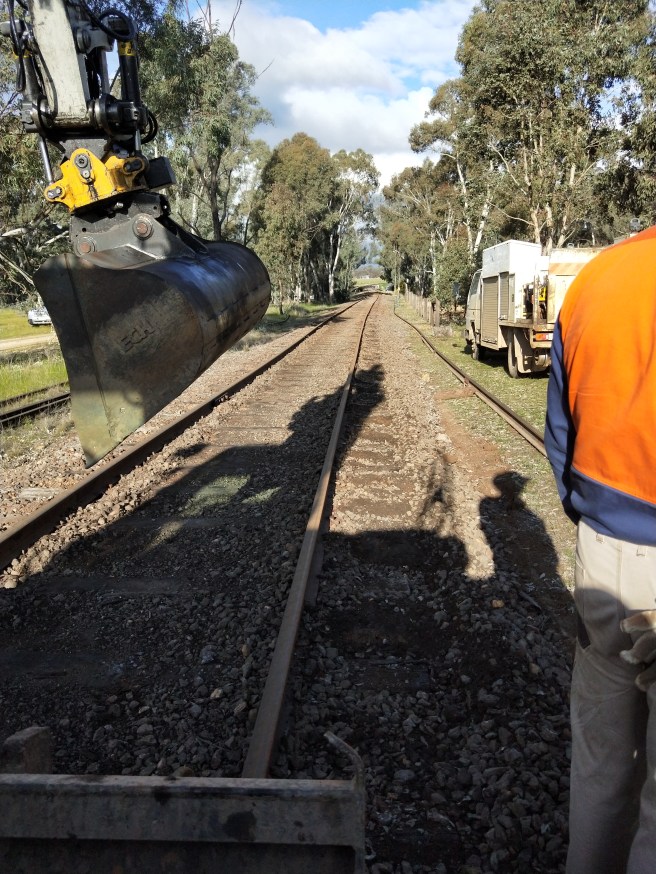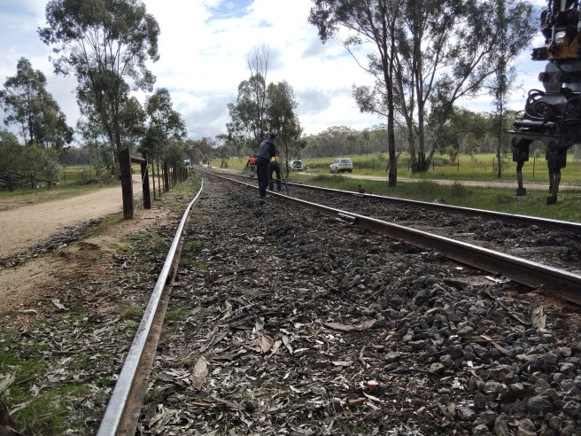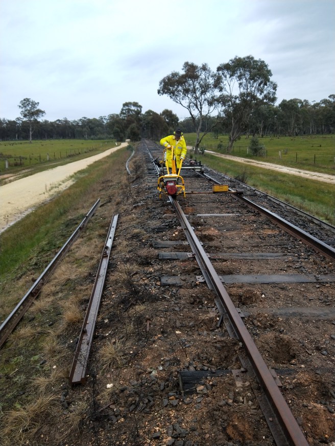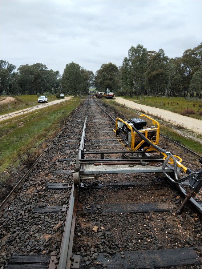 Tamping was next on the agenda, to remove the excessive cant that had come about from settling and tamping during the previous works. Through this process the dips were also removed. Here the jacks are installed at appropriate intervals to lift the rail evenly, we started by lifting the dips from the outside or high leg followed by raising the low leg to the correct level.