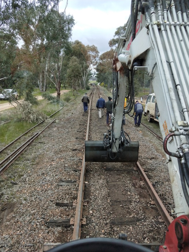 The hammer in action, although it vibrates quite a bit it is actually quite easy to use. Lunch time was called at 12.02pm just as the last dog spike was driven in.