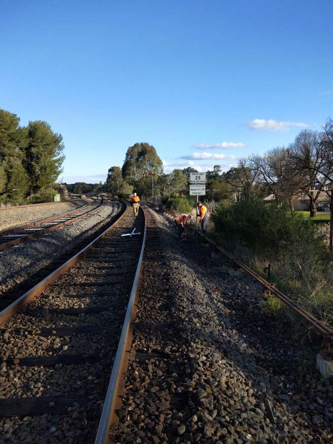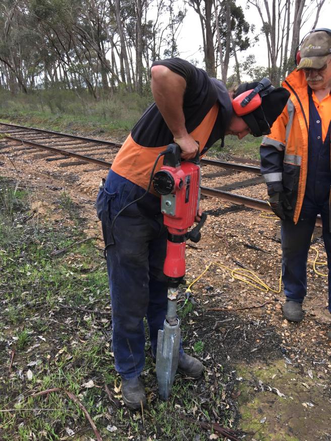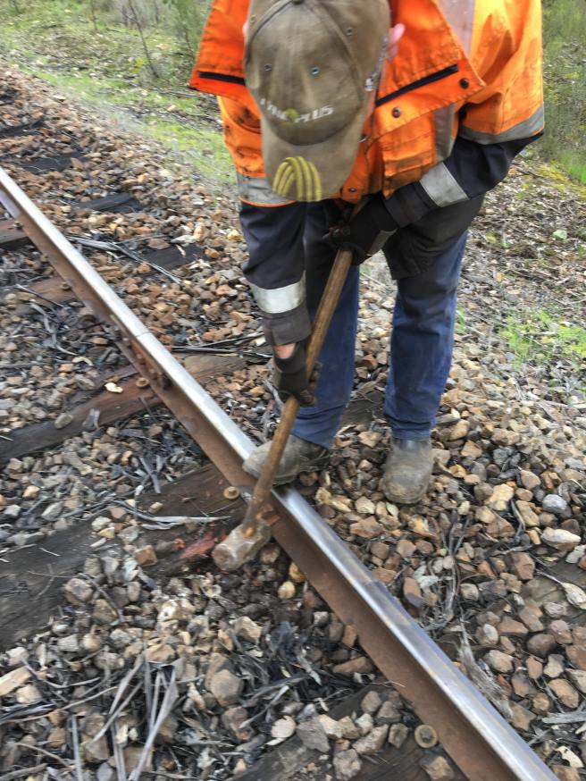 Today started off with some anchoring, to prevent rail creep. We focused on the steep section on the UP side of Farmers Bridge in the morning, moving over the top of the hill towards Castlemaine in the afternoon.