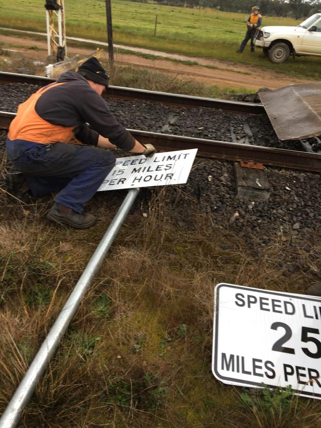 After working through the whole line, the final sign was installed in Castlemaine. This sign also includes instructions for our radio channels. A similar sign (minus the speed) was installed near Rowe Street.