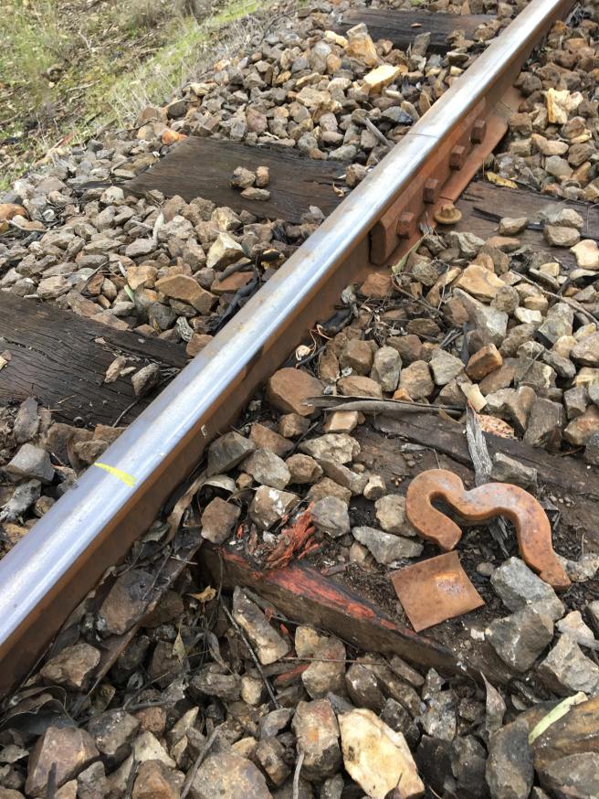 The section is all 60lb D class rail, for which anchors have never been produced. However by placing a shim on the foot of the rail a 60lb AS class rail anchor does the job perfectly. Here the shim is the reddish piece of material on the rail foot.