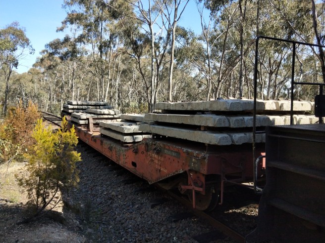 A wagon loaded with concrete sleepers for installation in curve 9 this coming Thursday and Friday was delivered to site. These will be unloaded and distributed tomorrow.