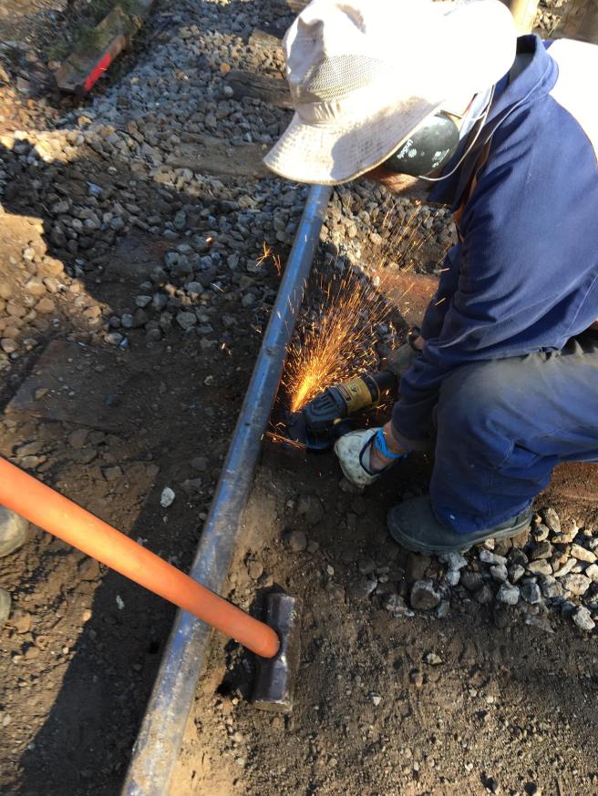 But once we broke through the hard crust we were into unfastening the sleepers in no time. Screws has been used in here and it took some digging and scrapping to get the screw heads clean enough for the socket to fit on.
