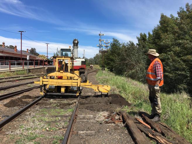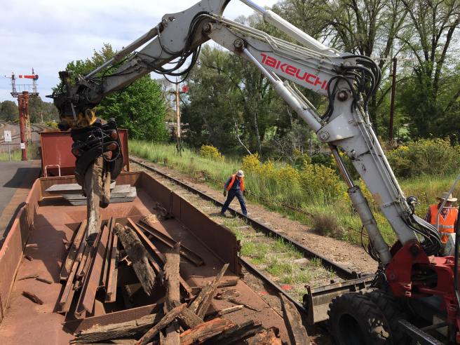 The afternoon consisted of cleaning up all the old sleepers. As we already had a loco and train at Castlemaine we thought we’d make use of it to speed up the process.