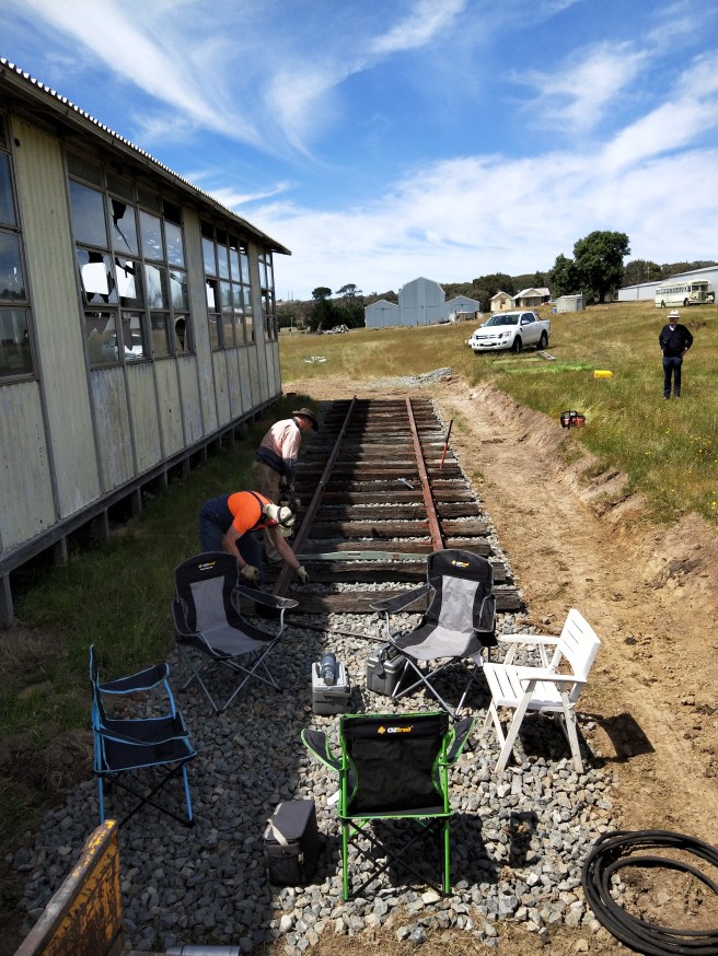 It was relatively labour intensive work with sleepers laid out by hand and the rails manipulated into place with the crane truck and crow bars. But otherwise a very simple and straightforward task.