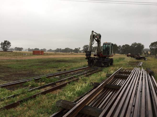 We arrived at Muckleford perfectly in time for the weather to turn very wet! But thankfully the digger was able to keep busy doing lots of tidying up and stacking of short rails.