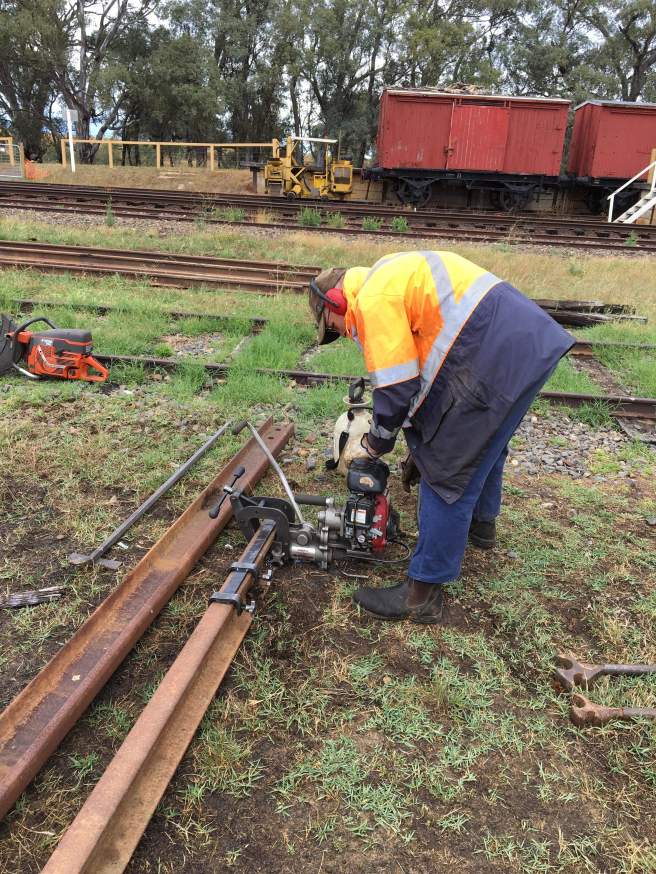 Tomorrow’s weather is also a little shaky but should be manageable, so we’ve changed plans and we’ll start at tangent 15-16 bolting up rails, before heading back to Muckleford to prepare more 80lb rail. Meet Maldon 8am