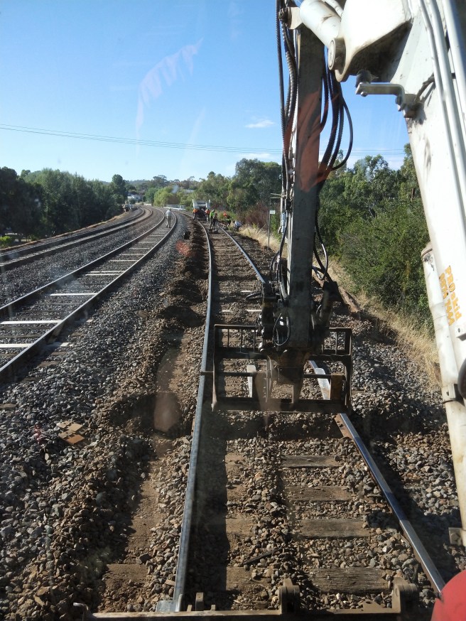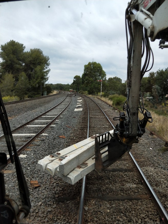 We didn’t have the luxury of having the sleepers distributed before the works, so that just fits around and between removing the old, scarifying and clipping up.