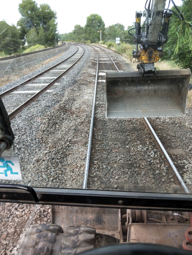 The rock moving took until lunch, after which all the concrete sleepers were tamped, which took a while.