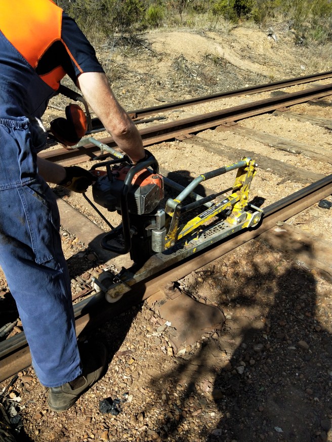 One of the main tasks being the unfastening of the steel sleepers, here Clive uses the rattle gun on its trolley to unfasten the nuts. In total only 2 of around 80 bolts needed to be cut, which is a better rate than usual.