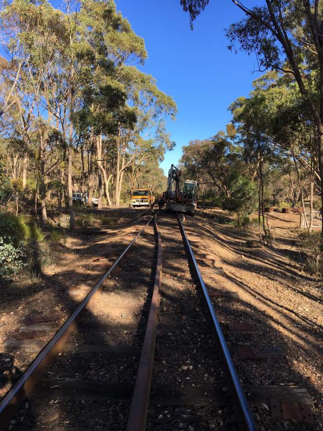Following closely behind was the digger, swapping the rail over.