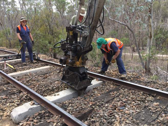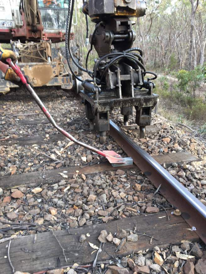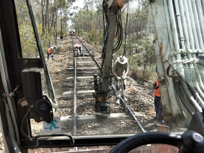 Another alteration was using the digger to hold up the sleepers while the first inner biscuit was installed and clipped. This saved a lot of manpower, probably not quicker but it was better use of our workforce.