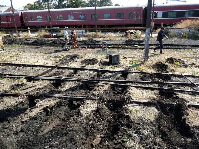 6 Road was the other recipient of today’s attention. With 30 sleepers installed on Friday spiked up and a further 15 unspiked and trenches dug ready for their removal first thing tomorrow.