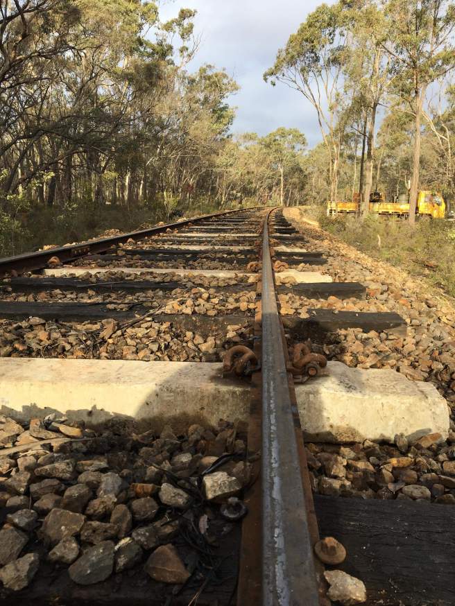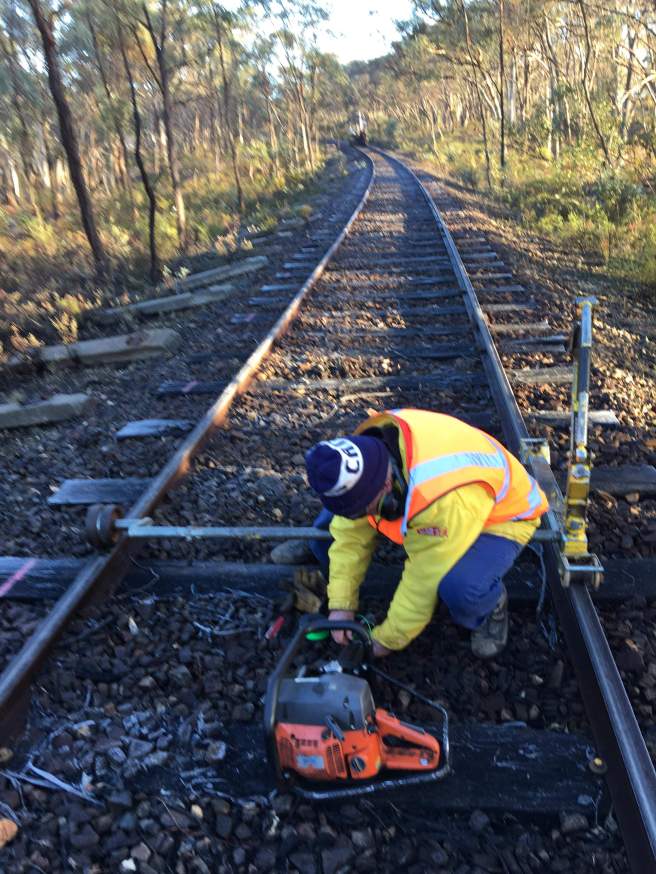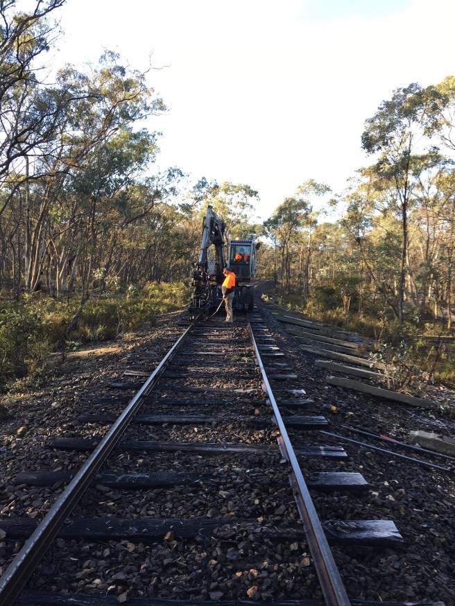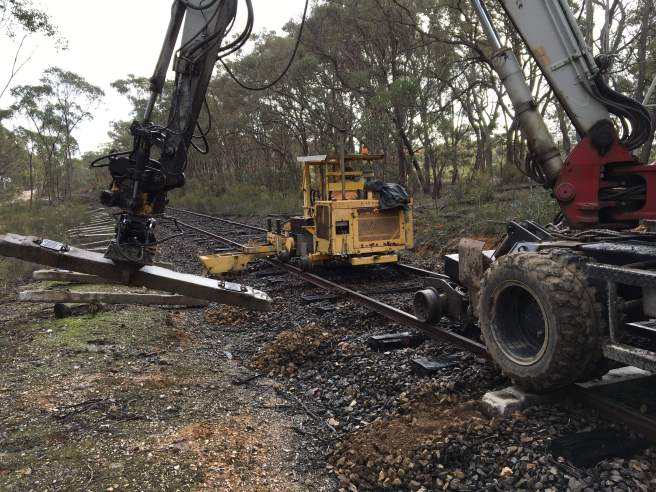And by days end we’d clipped up well over half the sleepers, leaving only a few hours work to finish off tomorrow. We’ll also make a start on bundling and strapping up the reusable timber removed. Meeting at Maldon 8am or on site from 8.30am.