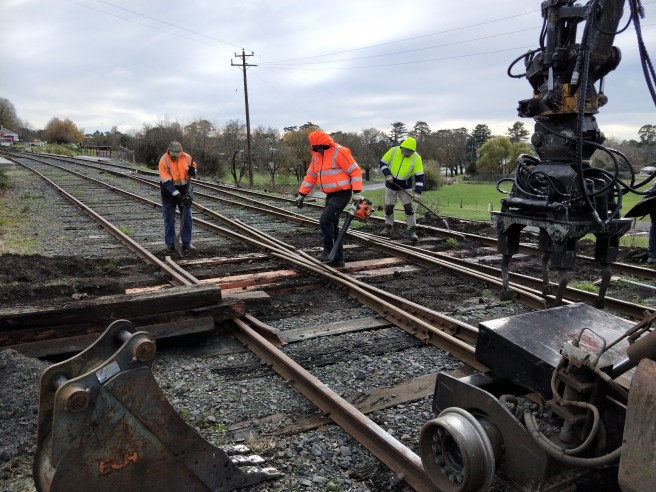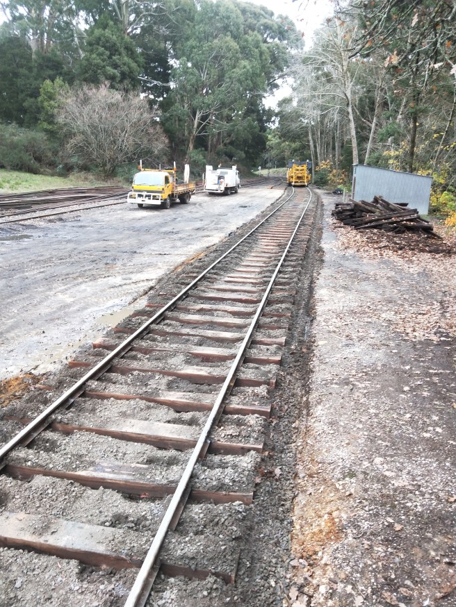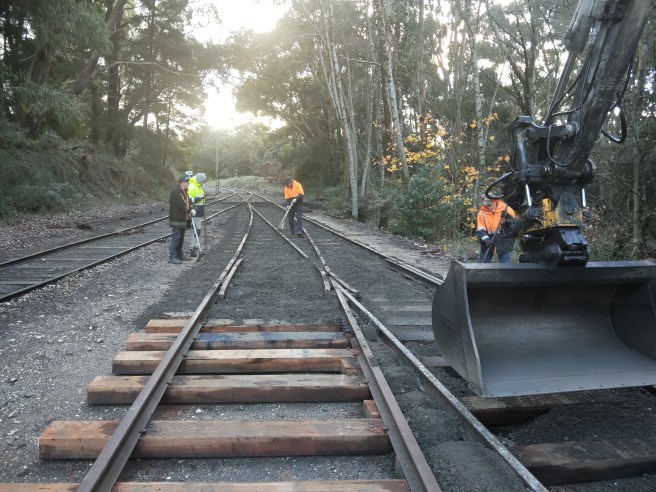 The main reason for our visit however, was to help them out with distributing ballast along their newly built track in Bullarto yard and tamping up the nice new turnout.