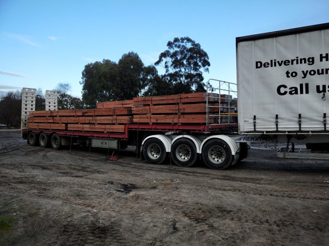 The reason for the slow start was the delivery of our point timbers! A very full B double load needed unloading first thing.