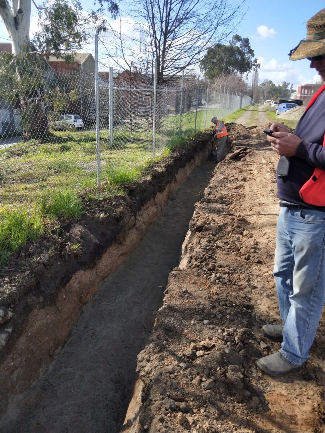 The trenching has begun for the services (power, water & NBN) coming in from Walker St. to the new development.