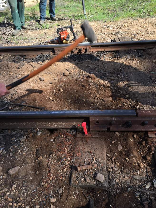 The day began with some rail straightening. With Bruce on the BUDA and John’s careful eye of the rail the kinks were skillfully removed. Unfortunately we’re down to the dregs of the rail supply, which are often ones were rejected earlier for these reasons.