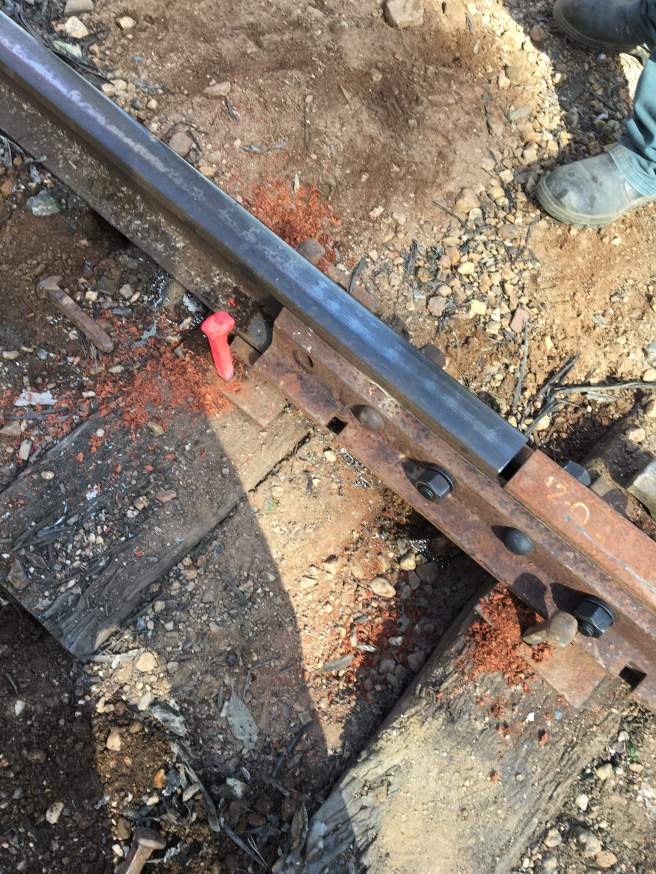 The joining of the new and the existing 80lb, the last time for this leg! The old 60 to 80 lbs junction plates can be seen in the background, these won’t be needed again in this section now. Today saw 16 x 80lb rails installed, some shorter than usual but still better than what it’s replacing.