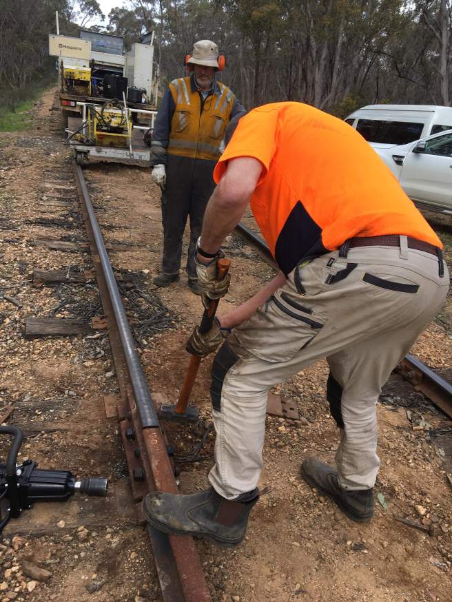 Well today was very momentous… With one leg of the re-railing between Maldon and Muckleford now more or less complete!!