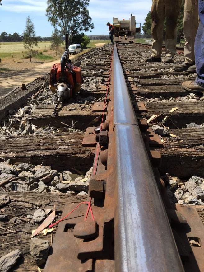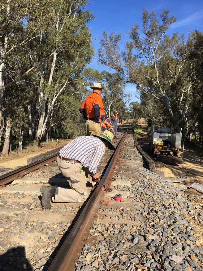 As the rail heads are well worn, the spike holes in the sleeper plates are often a better guide for this work.