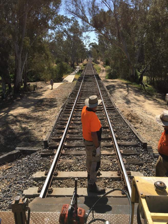 The first was patching holes in the decking of Muckleford Creek Bridge. It’s a terrible job, lots of manual digging of ballast and the like but unfortunately essential to maintain a good track.