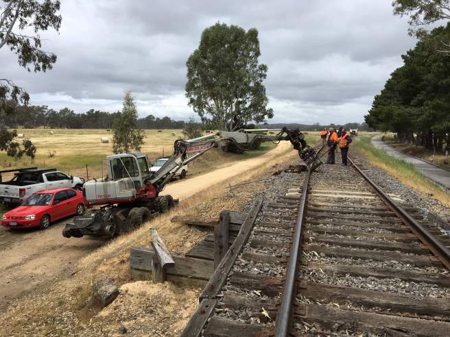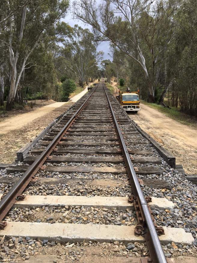 It’s been a few days worth of work, but today saw that culminate in a very straight and very level track over the notoriously wiggly Muckleford Creek Bridge.