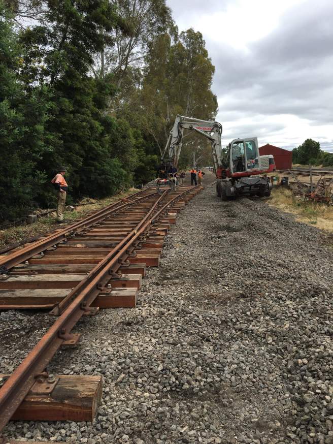 The job’s not finished yet, with the final rails still to be bolted up, ballast to be applied and lots and lots of lifting and tamping to do, we’ll be busy tomorrow, any extra hands very welcome.