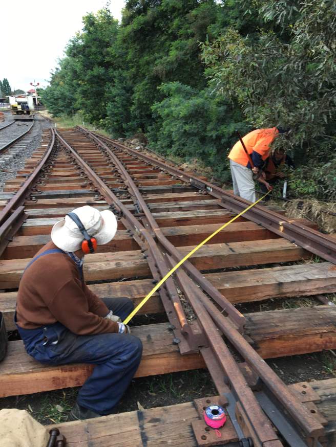 After getting the turnout exactly right, we moved our attention to slewing the existing track.