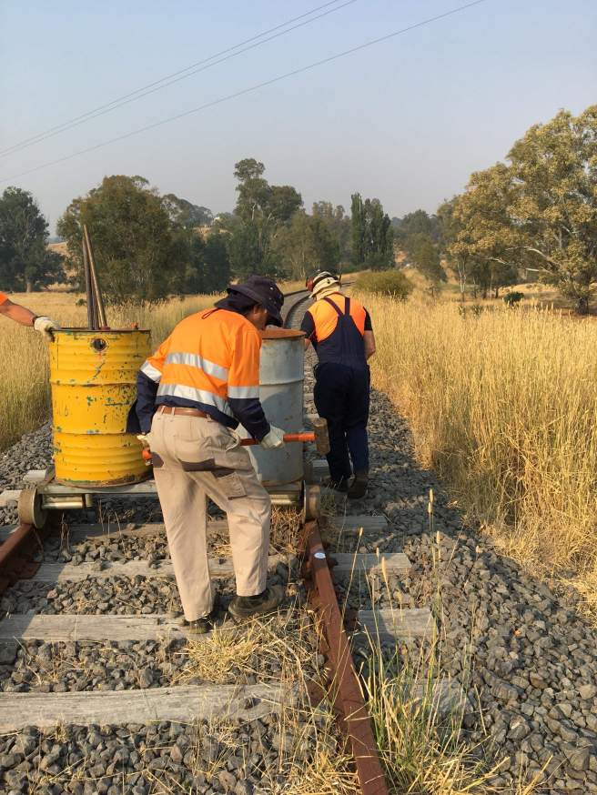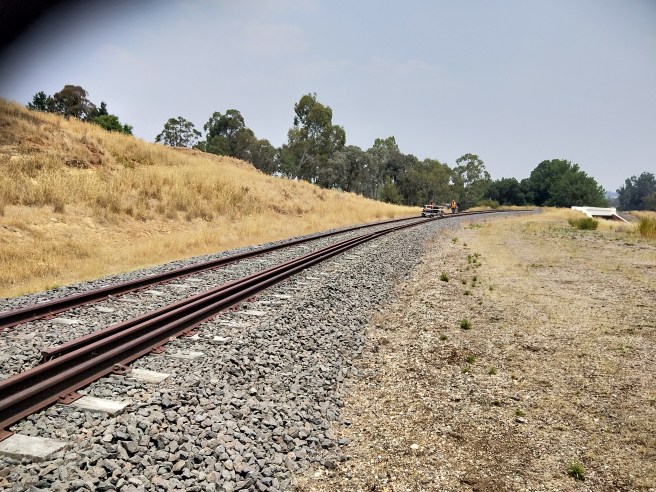 So far we’ve only dragged the rails a few hundred metres, but tomorrow should see them dragged up to the first road crossing.
