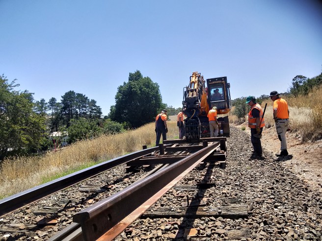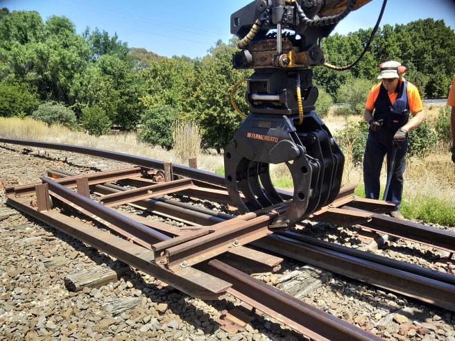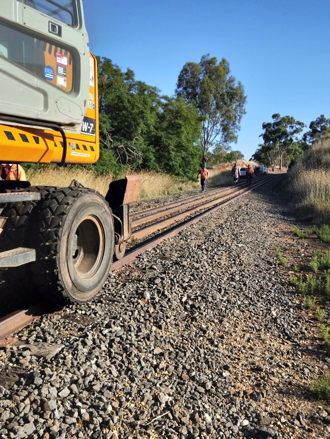 We’re towing up to the joints, breaking the rails, then dragging the loose rail over the sled and towards Castlemaine (for a suitable distance).