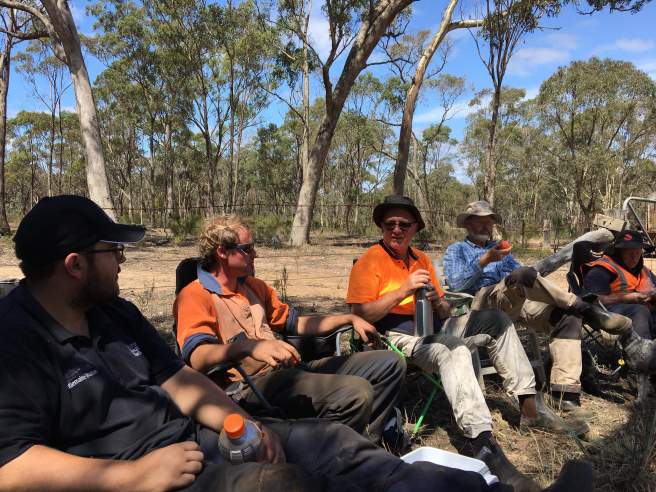 A busy scene, with the spike removal gear being loaded back onto the truck, while Rolf tends to a sticking chuck in one of the drills.