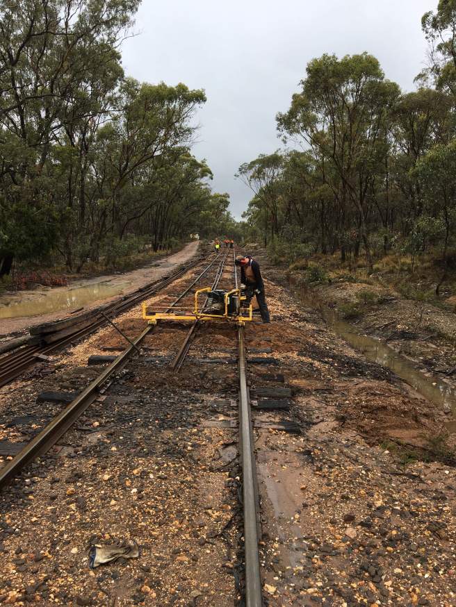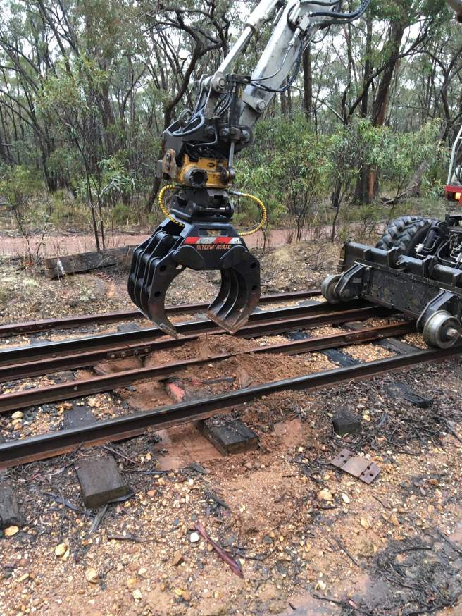 While the digger made it’s way to site from Castlemaine, the crew started about removing the sleeper plates.