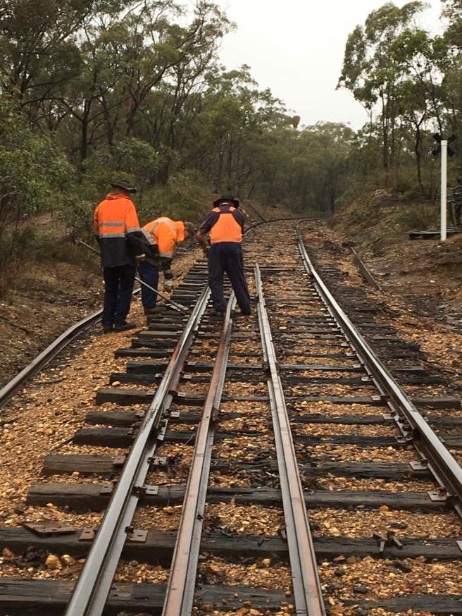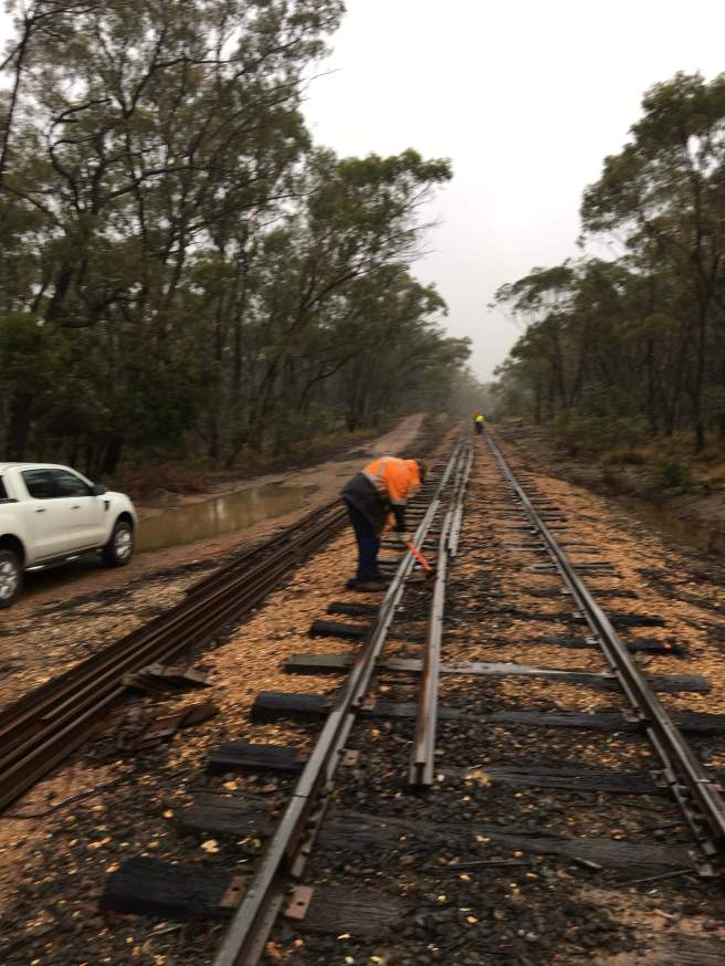 With a scrape from the digger to restore some material around the sleepers seeing the job at a close. To call it ballast here would be a bit generous… But it’ll do until we can apply a good layer of rock.