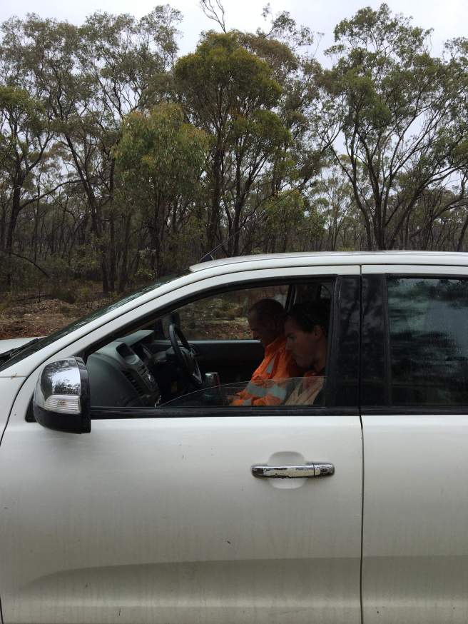 Lunch was held in vehicles, to avoid the rain. With John and Will making good use of the close proximity to ignore each other and look at their phones!