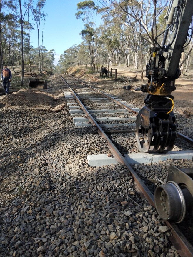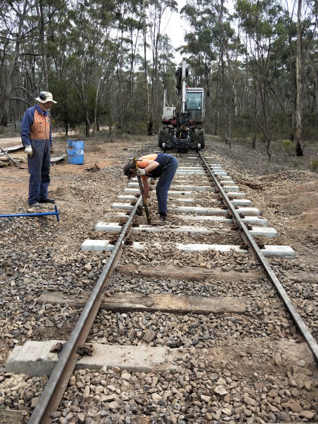 This afternoon was spent clipping up all those sleepers that had pads, leaving only about 50 to go to complete the tangent. Not a bad effort for a gang of 3.