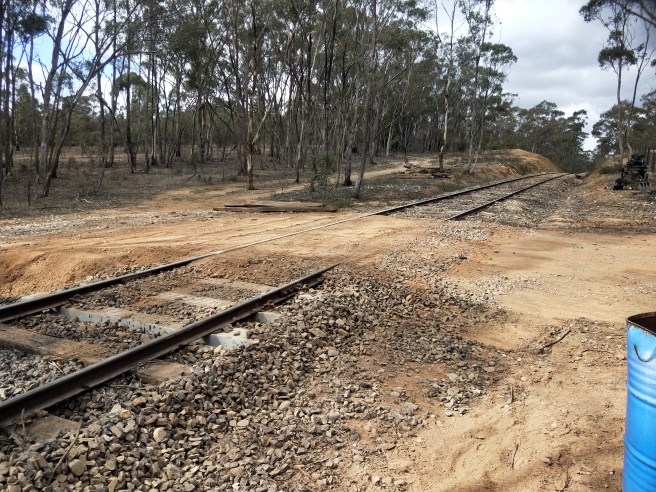 The finished roadway, it is actually 99% the old ballast and crushed rock with a skim of gravel (stockpiled nearby from the original relay some 18 years ago) over the top to offer a smooth path for all the cyclists and pedestrians who use the crossing regularly. We had John run the gang truck back and fourth to compact the surface which seems to have given a solid result, first rains will tell though.