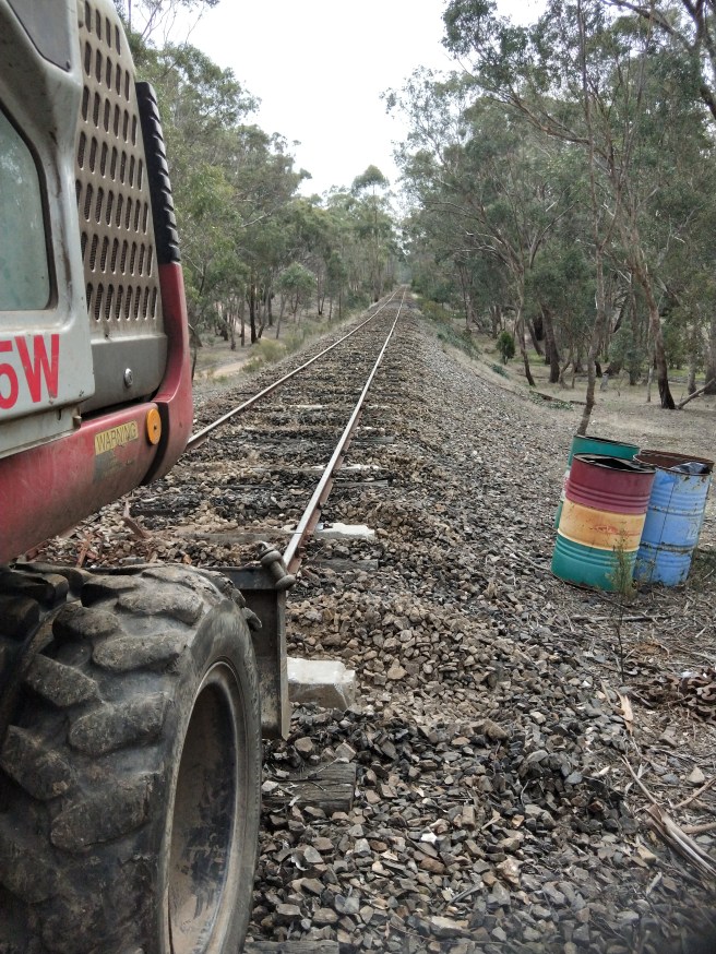 The afternoon wasn’t wasted, as we had to start the Y class to pull wagons out of the shed, we decided it was well overdue a battery charge so we did a run to Muckleford to bring back the civil train ready for loading more conc. sleepers near Woodlocks Ln, which will do with the Hyundai while the takeuchi is fixed.