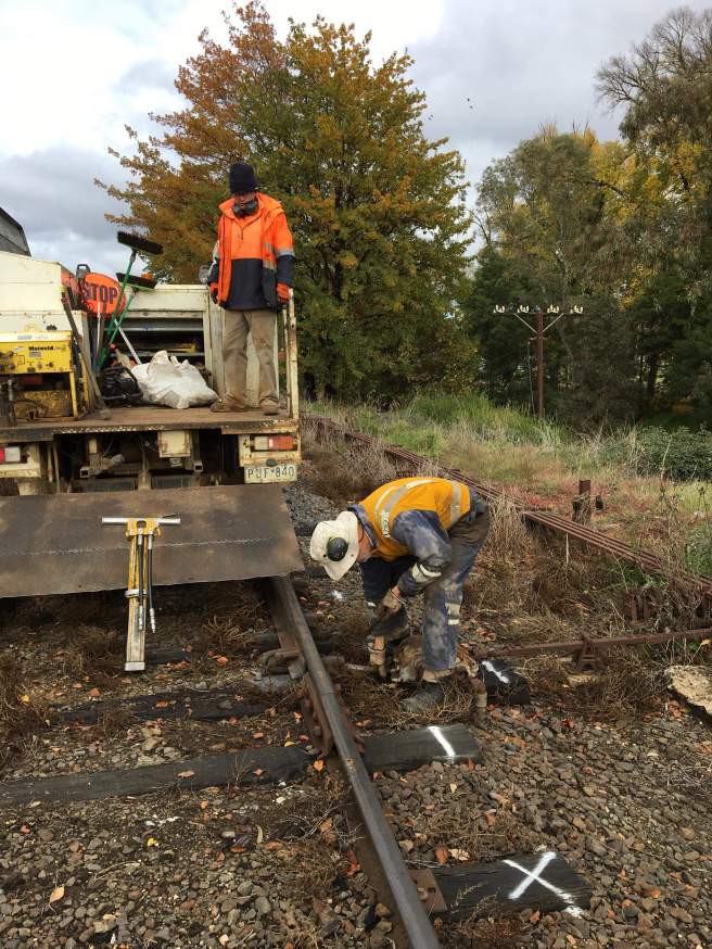 The rest of the day was spent replacing some point timbers in Castlemaine Yard. It’s always time consuming work, requiring disassembly of rodding and working in restricted space.